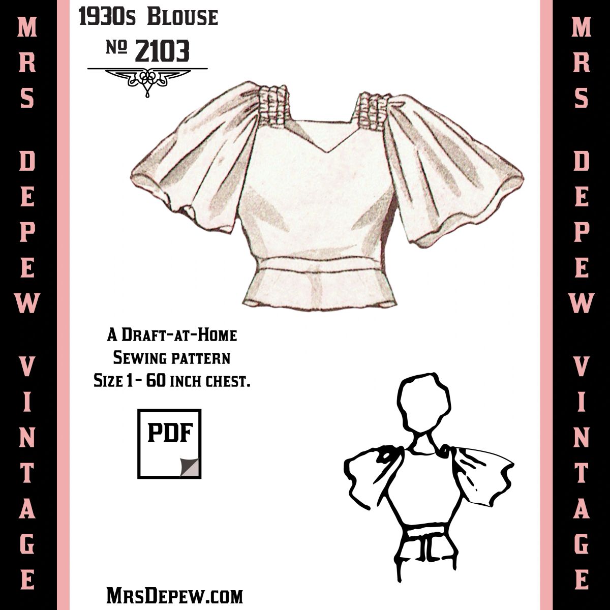 D A H Vintage Sewing Pattern 1930s Peplum Blouse In Any Size Plus Size Included 2103